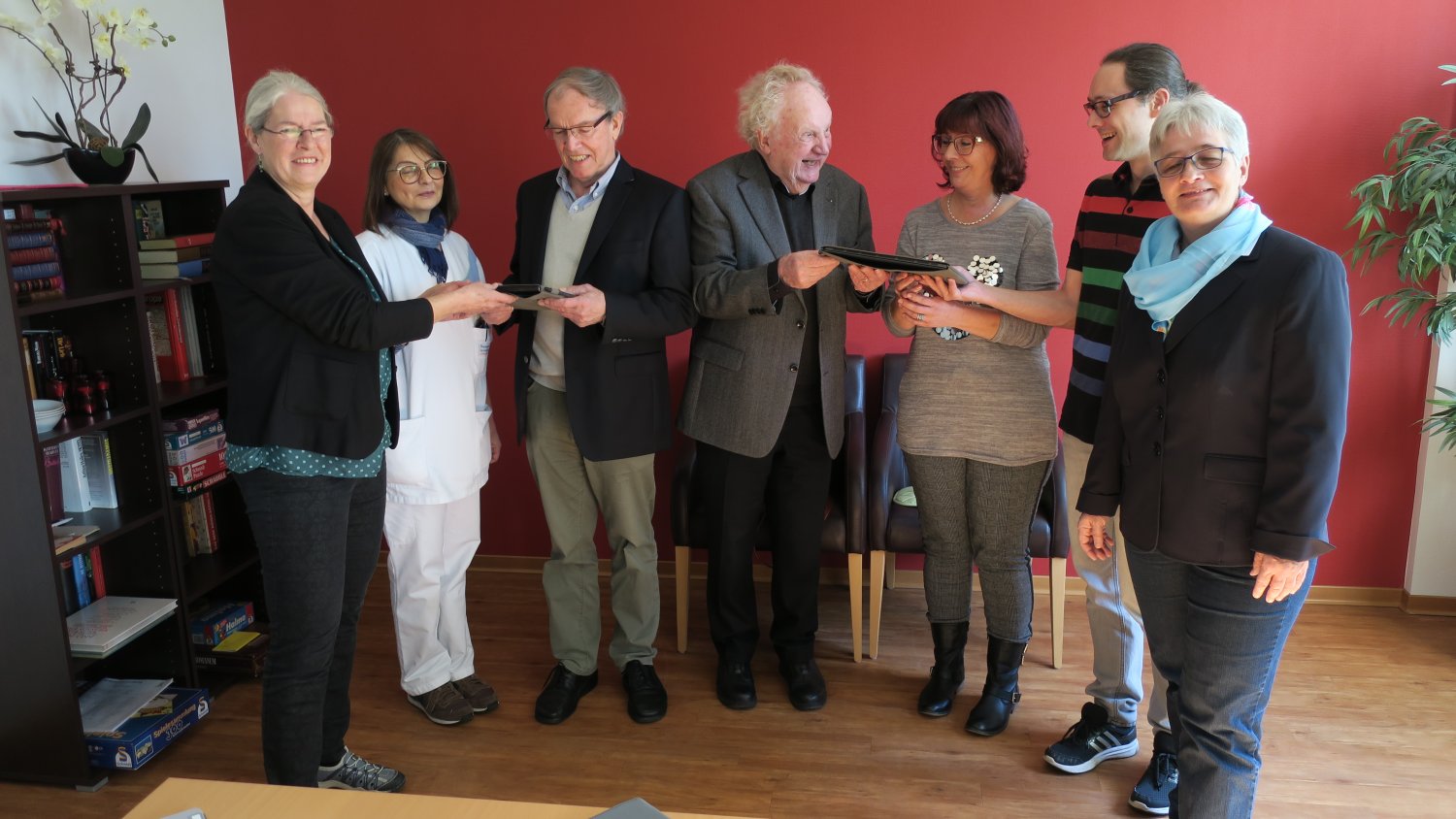 Am 19.03.2019 fand in den Räumen der Ökumenischen Sozialstation Ludwigshafen in der Weinbietstraße 36 die offizielle Übergabe von vier gespendeten Tablets statt. Hocherfreut nahmen Geschäftsführerin Sabine Pfirrmann, Pflegedienstleitung Stephanie Horst sowie Frau Sabine Gailing und Frau Leonora Bonanno die Geräte von den Beauftragten des Rotary Clubs Ludwigshafen Wolfgang Körnig und Dr. Friedhelm Borggrefe entgegen.